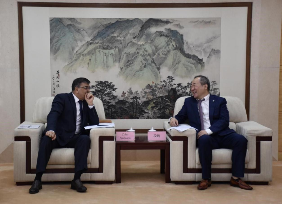 2023年8月14日,段鹏校长在学校会见了塔吉克斯坦共和国驻华大使萨义德佐达·佐希尔。双方就推动国际中文教育、亚洲经典著作互译计划、世界汉学研究等方面合作,加强人文与教育交流进行深入探讨,达成系列共识。双方希望可以共同推动中塔语言互学、学分互认、教育资源共享,推进两国人民文化理解、民心相通。